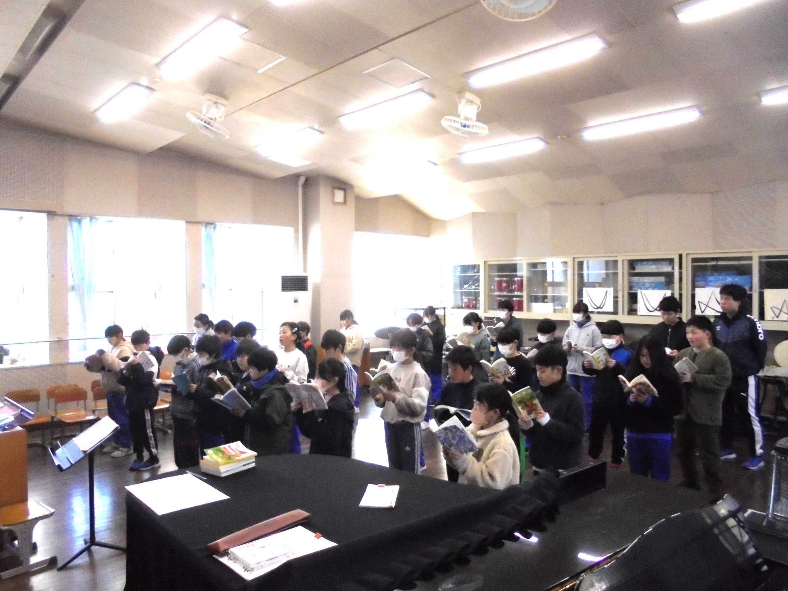 卒業式に向け、低学年・高学年に分かれて歌の練習を始めています。