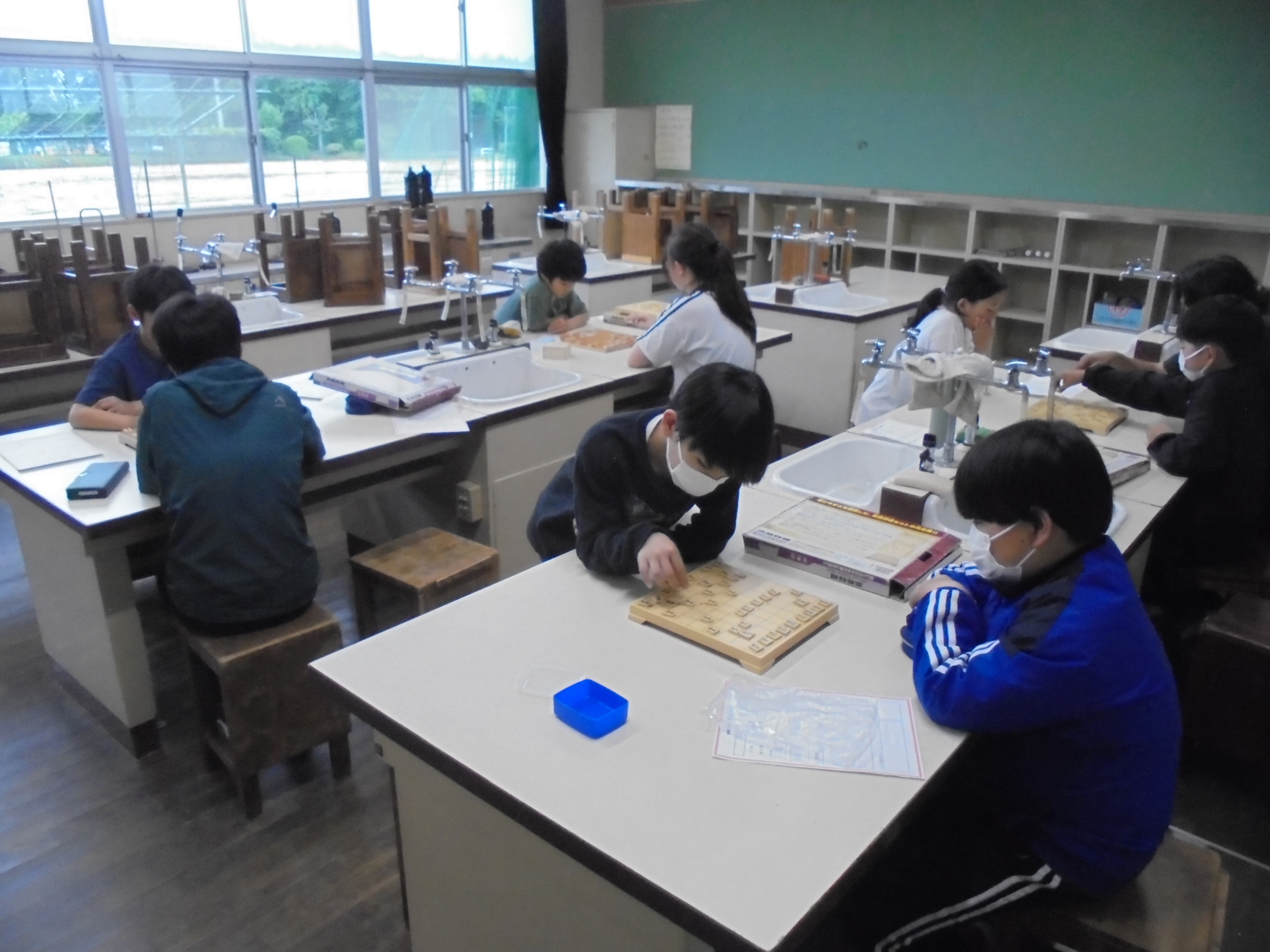 【将棋】 初めて将棋に挑戦する人もいます。駒の動きを確かめなが対戦しました。