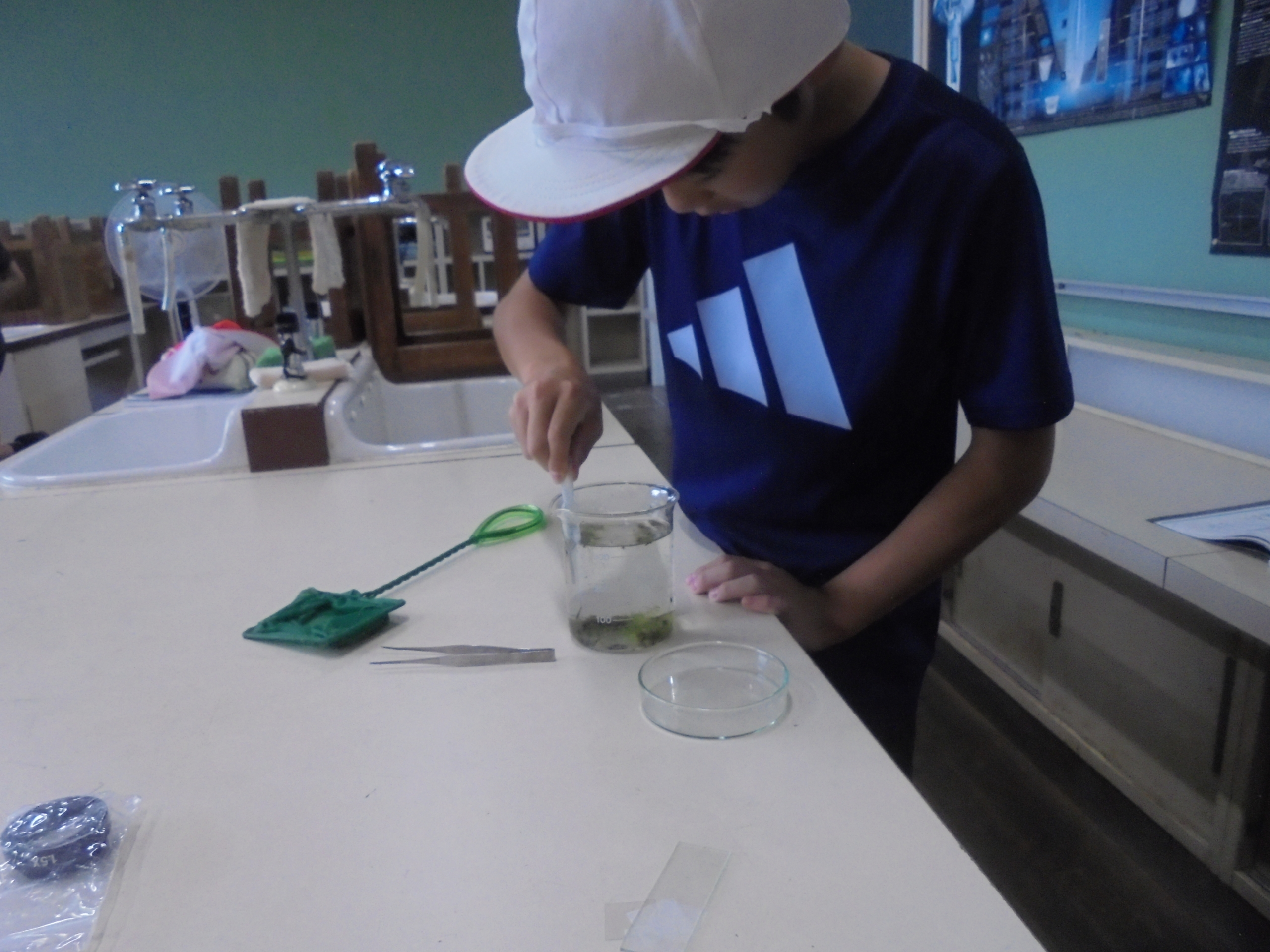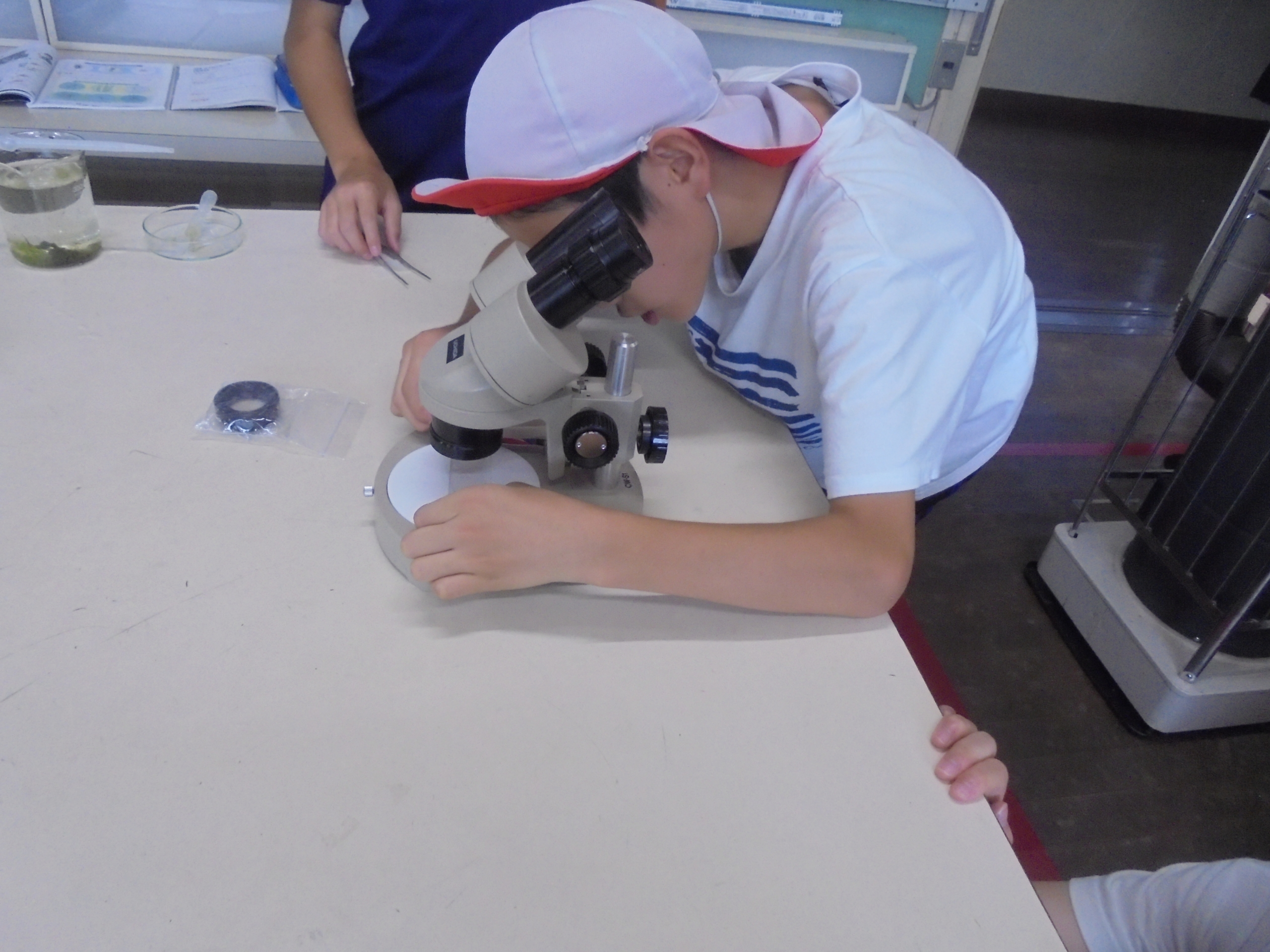 何が見つかるかな 6年生が理科の学習で、水中の水草や小さな生き物などを観察していました。 ビオトープの水を理科室に持ち帰り、顕微鏡で調べました。 水草の表面、アオミドロに見える模様をじっくり見て、歓声をあげていました。 編集者2024-09-10T18:21:07+09:002024年09月10日|