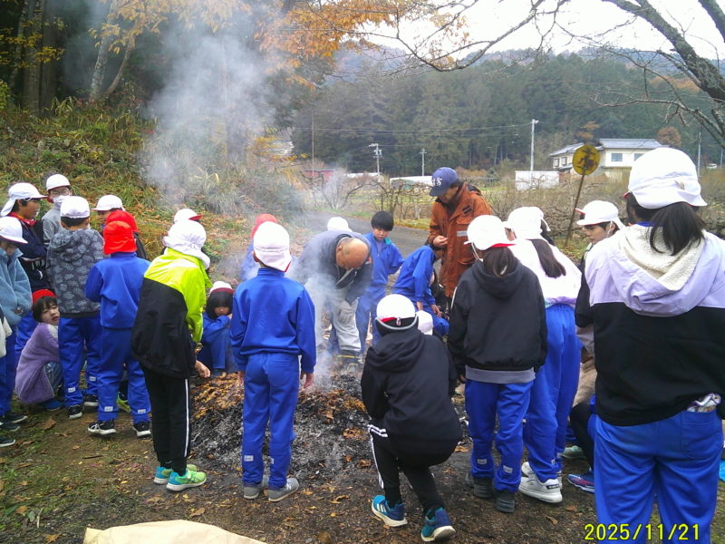 焼きいも大会 マラソン大会の後は、恒例の焼きいもです。 走る前に火の中へおいもを入れておき、走り終わった頃にはいい感じでおいもが焼けていました。 頑張った分、余計においしく感じられたことと思います。 編集者2025-11-21T17:39:38+09:002025年11月21日|