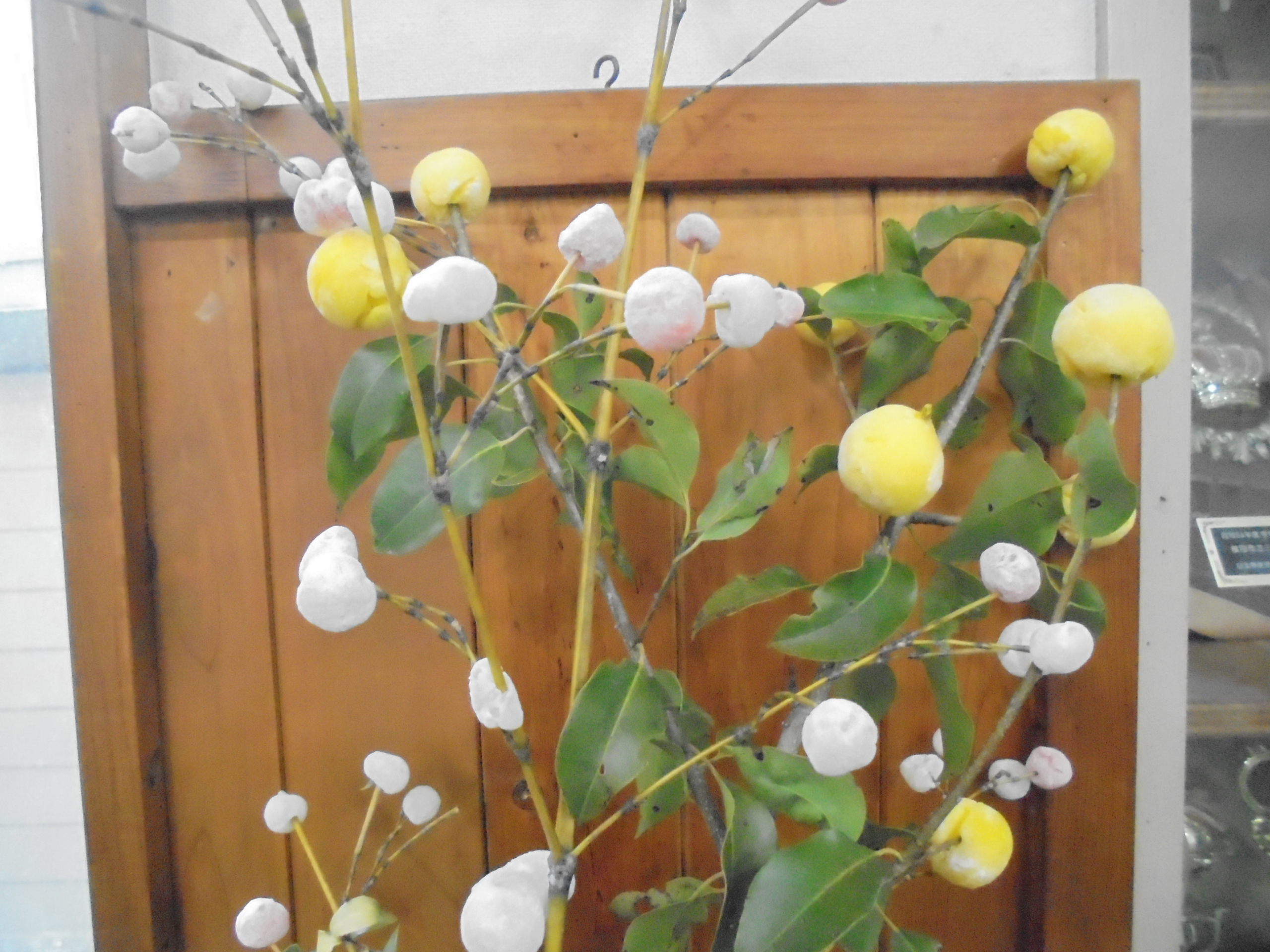 三穂地域では、柿作りが盛んなこともあり、昔からオレンジ色や黄色の玉も飾られてきたそうです。