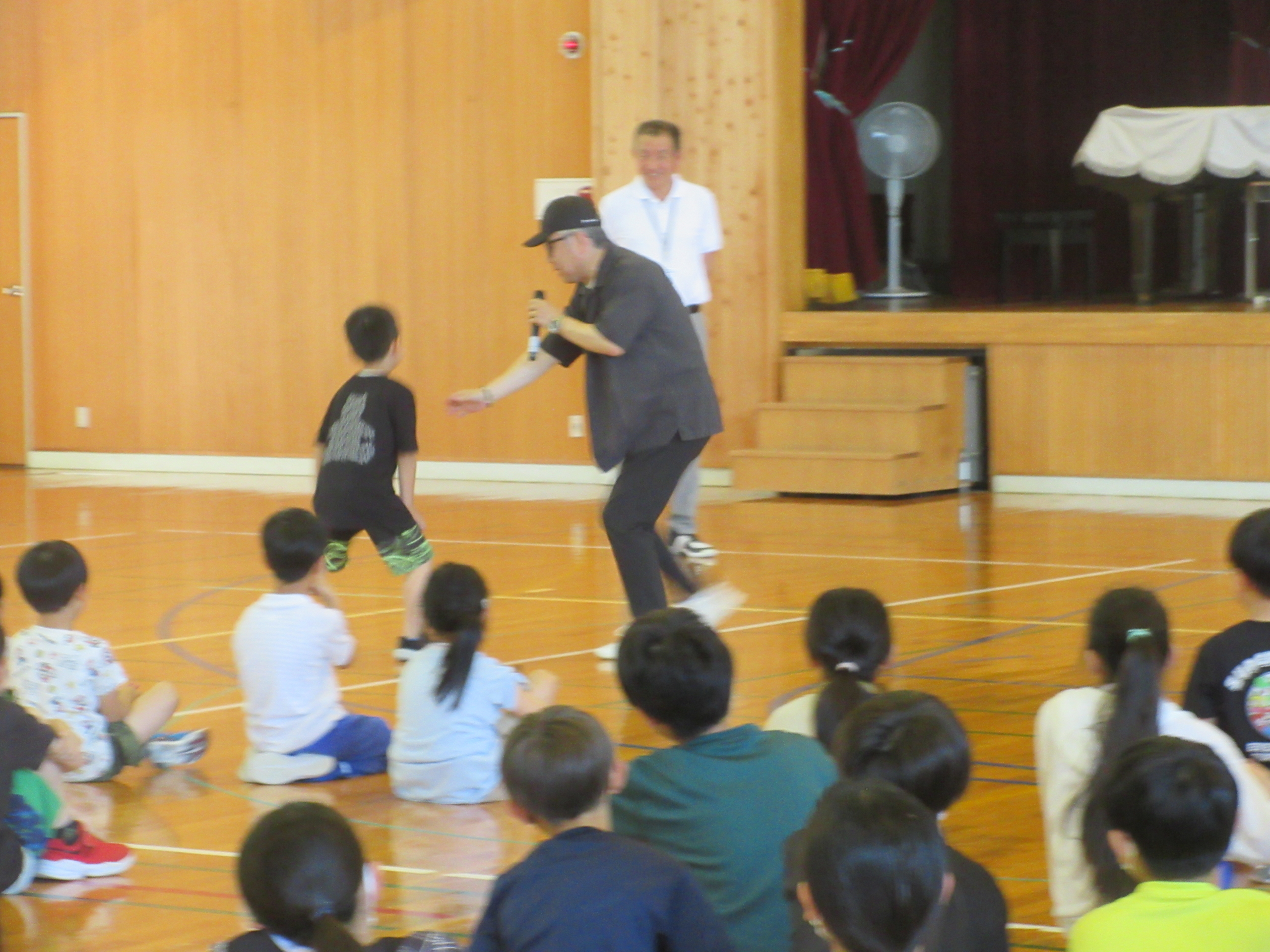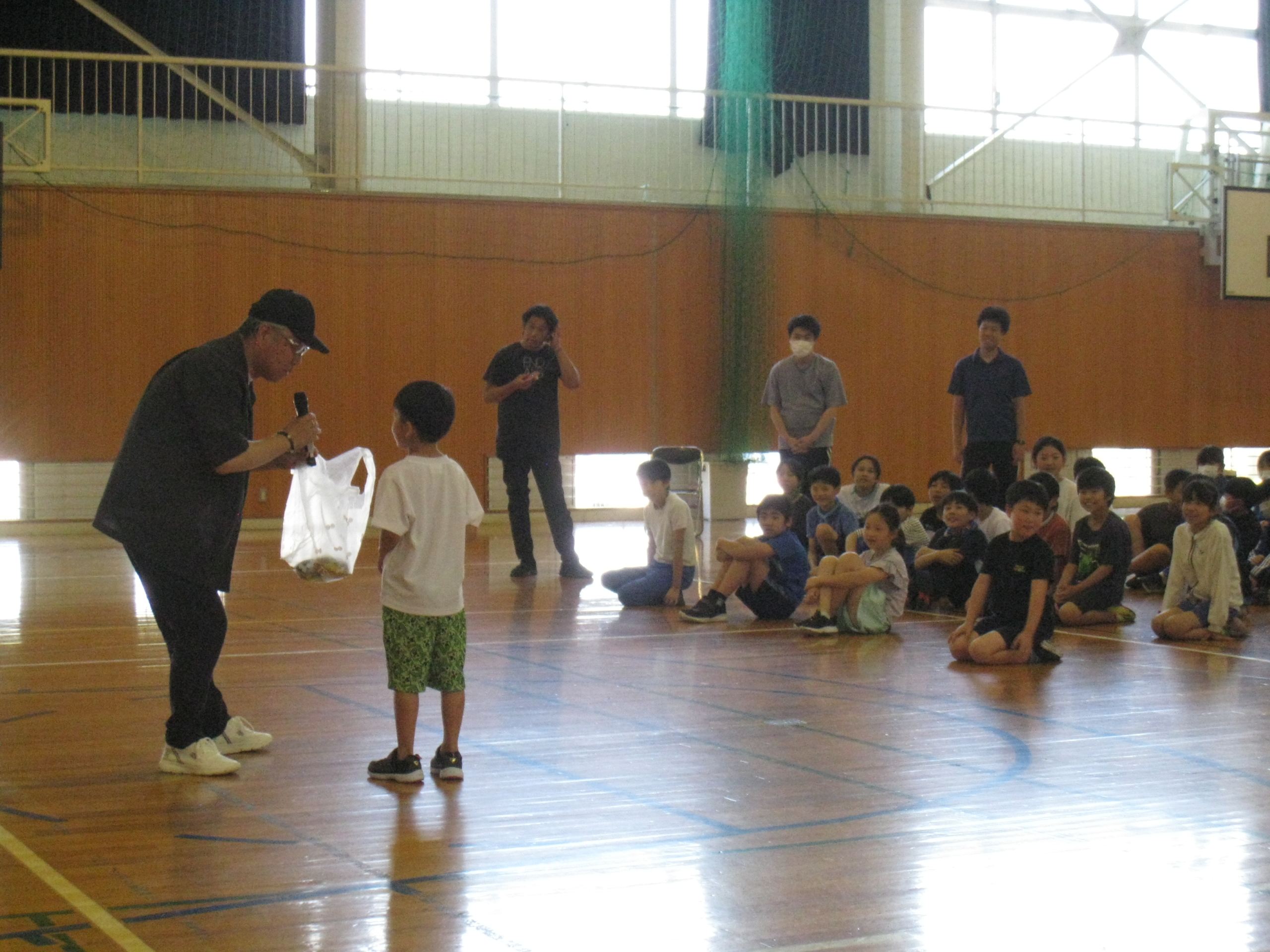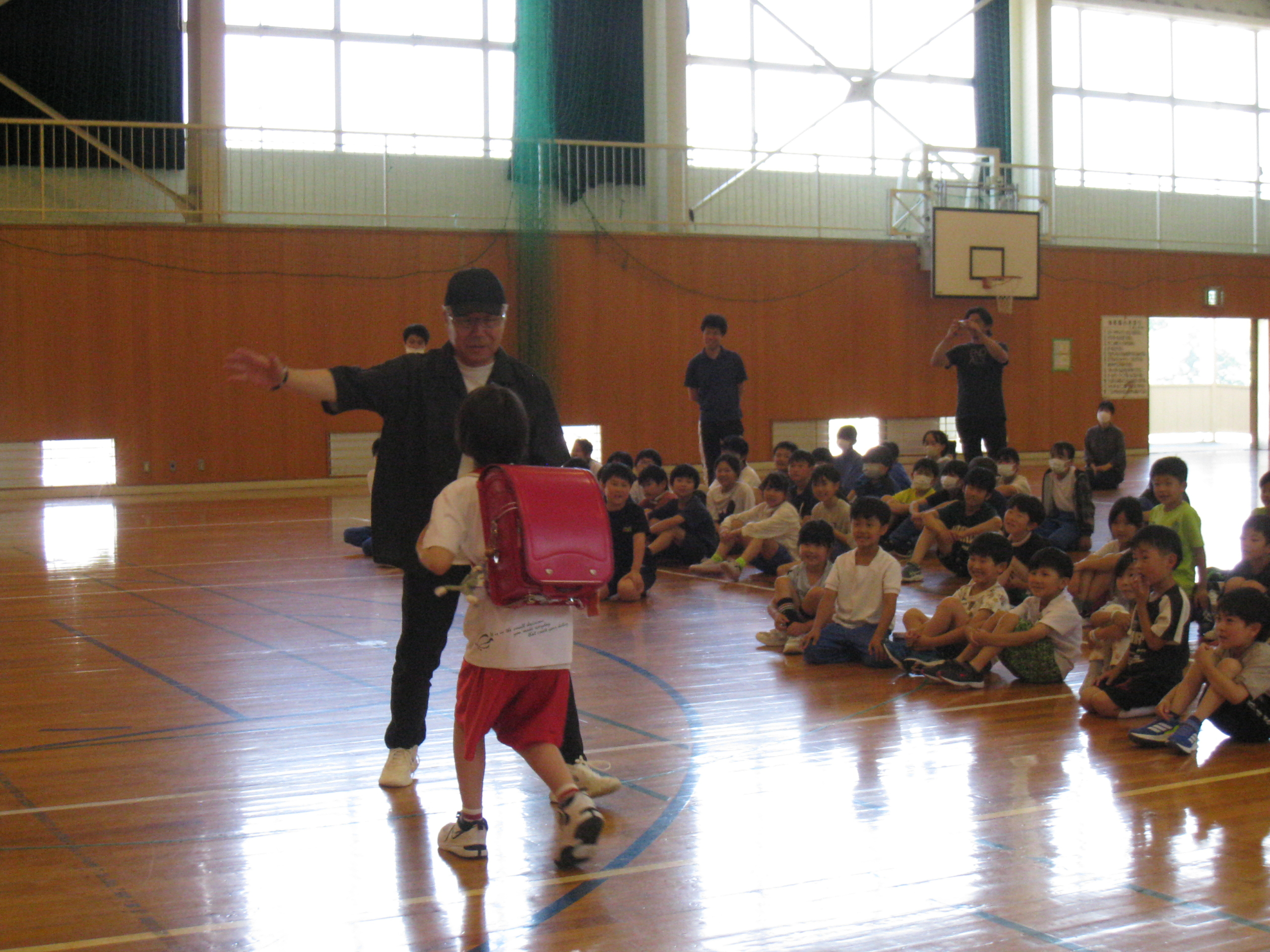 防犯教室がありました。不審者に声をかけられたときの対応や捕まえられそうになったときの逃げ方などを教えてもらいました。実際の場面を想定して、言葉巧みに近寄ってくる不審者役の警察の方に対して、冷静に対応できた子どもたちでした。